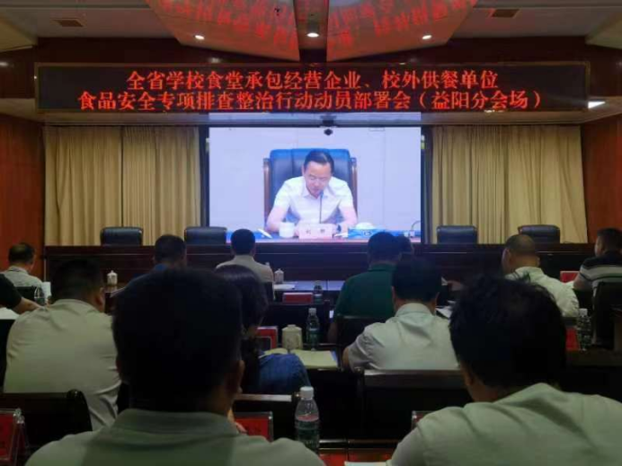 益阳市食安委副主任、市人民政府副市长邓曙光在益阳分会场出席会议,市食安办主任、市市场监管局党组书记、局长朱崇文,市食安办副主任、市市场监管局党组成员、副局长祝波,市教育局四级调研员胡宏才参加会议。 在全省市场监管系统食品安全工作调度会上,祝波解读了《食品安全包保督导指南》,该指南由市食安办起草出台,由省食安办印发全省推广。 在全省学校食堂承包经营企业、校外供餐单位食品安全专项排查整治行动动员部署视频会后,益阳市随即召开会议进行部署,邓曙光指出,校园食品安全工作事关学生的身体健康和生命安全、事关广大家庭幸福、事关社会和谐稳定,务必引起高度重视。 邓曙光强调,一要做好汇报。与会单位参会人员要迅速将会议精神向单位主要领导汇报,高度重视专项排查整治行动工作;二要立即行动。相关单位要出台食品安全专项排查整治具体方案,结合食品安全“两个责任”工作统筹开展,不搞两张皮;三要贯彻实施。各单位要按照省、市专项排查整治方案要求切实抓好各项工作落实。 会议以视频形式召开,各市、县市区设分会场,益阳市各级食安办、教育系统、市场监管系统、学校(学校食堂承包或委托经营)、学校食堂承包经营企业、校外供餐单位等有关单位人员参加会议。