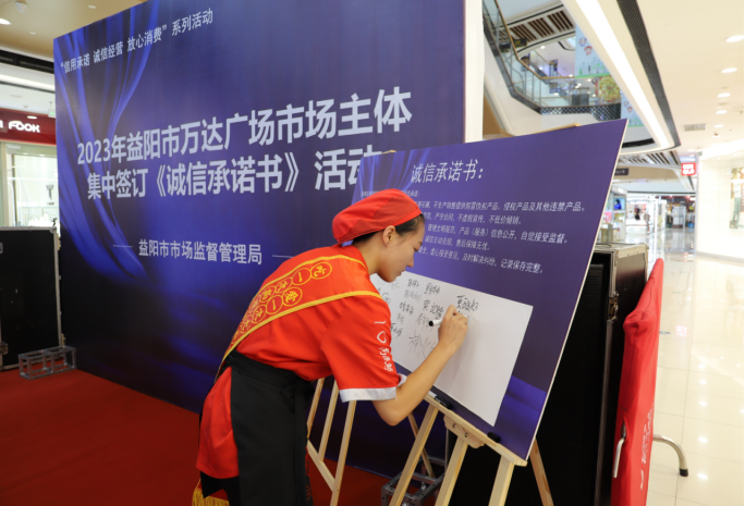 9月15日上午,益阳市市场监管局在万达广场开展经营户集中签订《诚信承诺书》活动。