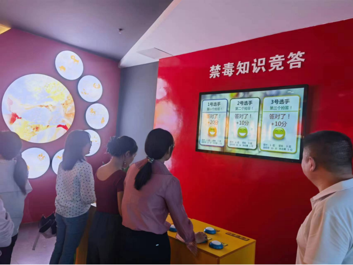 在禁毒教育基地,讲解员结合展示厅科普展板、毒品照片、仿真毒品模型、警示案例汇编等资料,向大家详细介绍了禁毒历史、禁毒形势及法律法规、毒品的种类及其特点等相关知识。让大家了解了缉毒警察英勇事迹和如何远离毒品,意识到毒品对社会的严重危害和全员参与防毒、禁毒工作的必要性。