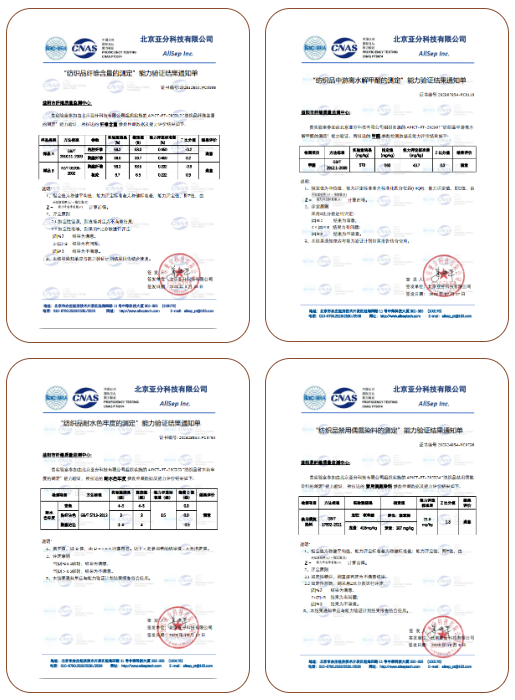 2023年,益阳市纤维质量监测中心收到能力验证项目APICT-PT-202331“纺织品禁用偶氮染料的测定”、APICT-PT-202312“纺织品纤维含量的测定”、APICT-PT-202323“纺织品耐水色牢度的测定”和APICT-PT-202307“纺织品中游离水解甲醛的测定”的结果反馈,获得满意结果。