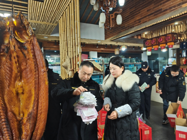 在执法检查中,联合检查人员仔细核对鱼类水产品经营单位、餐饮门店鱼类产品进货票据,查看店面招牌、菜单菜名等是否有宣传“野生河鱼”“江鲜”“河鲜”等字样,向经营者发放禁止制作、销售、食用长江鱼鲜和保护野生动物宣传单。要求经营者必须严格落实水产品进货查验及索证索票制度,坚决杜绝野味、长江野生鱼鲜入店,不得以“长江”“洞庭湖”“野生”等菜单、店招字样做宣传招揽顾客,不得在菜单之外私下向消费者推介、提供长江流域非法捕捞渔获物和其他野生动物,共同营造保护生态环境的良好氛围。