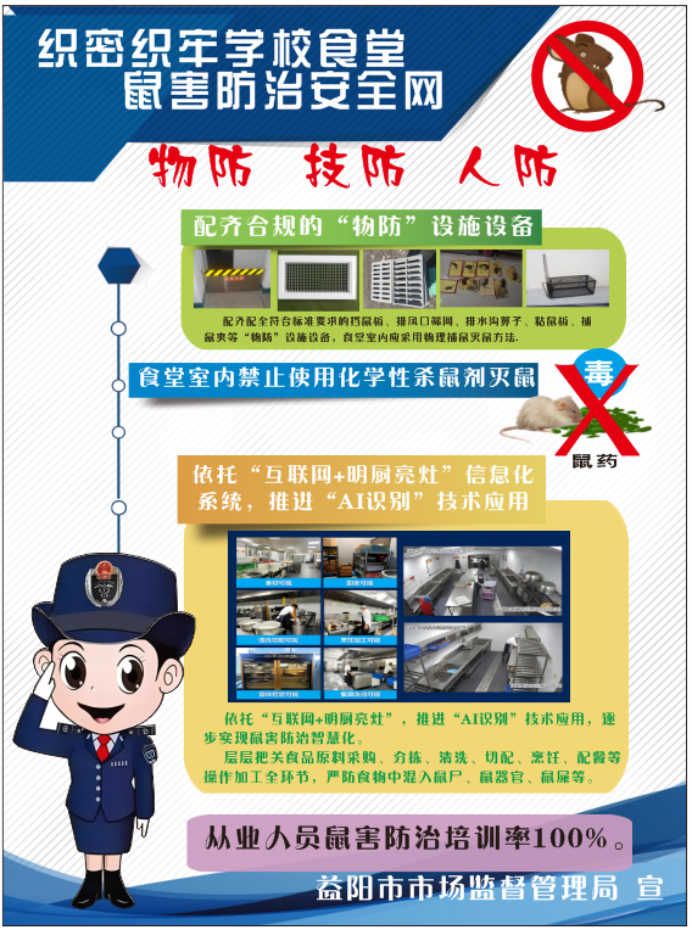 学校春季开学在即,为稳步推进校园食品安全排查整治专项行动,及时发现和消除风险隐患,有效防范食品安全事故发生,切实保障广大师生饮食安全,益阳市市场监管局就春季开学校园食品安全提示如下: 一、落实主体责任。要严格落实校园食品安全管理的主体责任,校长(园长)是校园食品安全第一责任人。要进一步完善校园食品安全责任体系、风险防控动态管理机制、食堂食品安全风险清单,建立风险隐患排查整改台账,全面加强校园食品安全管理。要压实食品安全总监和食品安全员责任,落实食品安全“日管控、周排查、月调度”工作机制。 二、强化人员管理。开学前,要全面检查从业人员健康证明是否在有效期内,确保持有效健康证上岗。要组织食品安全总监、食品安全员和从业人员等开展食品安全知识、岗位技能操作等培训、考试,熟悉食品安全知识、规范操作程序,注意个人卫生。 三、开展全面自查。要对照《学校食堂食品安全自查表》开展自查自纠,做好自查情况记录,及时整改自查发现问题;保持学校食堂内空气流通,加工制作场所环境卫生干净整洁,完善“三防”设施设备;检查库存食品、食品添加剂和食品相关产品,及时清理处置过期、变质和感官异常的食品,并做好登记,尤其是米、面、油等大宗食材以及干蘑菇、木耳、花生等易受潮霉变的食材和已启封的调味料等。 四、规范加工操作。要严格执行《餐饮服务食品安全操作规范》《餐饮服务通用卫生规范》的各项要求,盯紧重点环节,排查风险隐患,严把主体责任、进货查验、食品储存、加工制作、餐具洗消、食品留样六道关口。加工贮存防止生熟食品交叉污染,烹饪食品时做到烧熟煮透。 五、用好“明厨亮灶”。要加强后厨食品安全管理,确保视频监控点覆盖高风险区域。对“明厨亮灶”及“互联网+明厨亮灶”运行进行日常维护,发现视频无法正常显示及时联系安装或维修公司上门维护,发现设备损坏及时更换。 六、加强鼠害防制。配齐配足粘鼠板、捕鼠笼、机械式捕鼠器等鼠害防制设施设备。在人员、货物进出通道处设置符合标准的防鼠挡板等防鼠设施。排水管道出水口、地面、墙壁、门窗、天花板等应采取措施有效避免老鼠侵入和栖息。定期开展环境卫生打扫和防鼠设施维护工作,消除老鼠活动藏身的土壤。 七、完善应急处置。要完善食品安全应急管理制度,强化食堂食品安全管理,预防食源性疾病,师生出现疑似食物中毒症状,应及时送医治疗,保护现场,上报属地党委政府、市场监管、教育、卫生健康等部门进行处置。 八、培养良好习惯。要把食品安全作为开学第一课内容,培养学生良好的个人卫生习惯,饭前便后洗手,不喝生水,不光顾无证照的餐饮店、路边摊,不购买“三无食品”;坚持光盘行动,制止餐饮浪费。