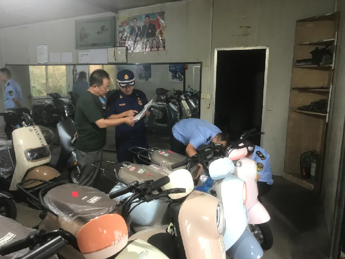 检查组对各个电动车销售点进行了检查,重点对销售网点资质是否合法、是否存在违规销售不符合认证的电动车、是否存在非法改装、拼装电动车行为和在销售电动车时是否证件齐全等问题进行了逐一查验,检查中发现1家经销门店涉嫌电池改装、车辆外观改装的问题车辆12台,已现场立案,对8家未完善进销台账的经销商现场进行了反馈立即整改,对2家抽检不合格的电动车经销商已经启动了案件调查。同时向电动车经销商和现场消费者宣传电动自行车、电动摩托车相关法律法规和标准要求,重点强调使用不符合国家标准的电动自行车带来的交通安全隐患和事故典型案例,督促其落实质量安全主体责任,严防不合格电动自行车流入市场。