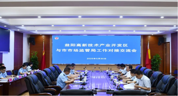 5月30日,市市场监督管理局党组书记、局长黄劲与益阳高新区党工委书记左志锋一行就优化营商环境、推动园区高质量发展进行工作座谈。市局在家班子成员,相关科室负责人参加。