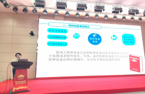 6月19日,益阳市市场监督管理局联合湖南省特种设备协会在湖南口味王实业有限公司开展“特种设备安全,从我做起”第四十一场公益巡回宣讲。省巡回宣讲讲师团副主任、省市场监管局原二级巡视员肖贝,市市场监管局党组成员、副局长刘青峰出席活动,各县市区市场监管局分管特种设备安全监管工作的领导和相关股室负责人、省特检院益阳分院班子成员、重点特种设备使用单位的安全总监和安全员代表共计200余人参加。肖贝、陈煜辉、吴丹红三位宣讲团讲师围绕特种设备基础知识、相关法律法规、风险管控和隐患排查、事故案例等主题进行了宣讲。