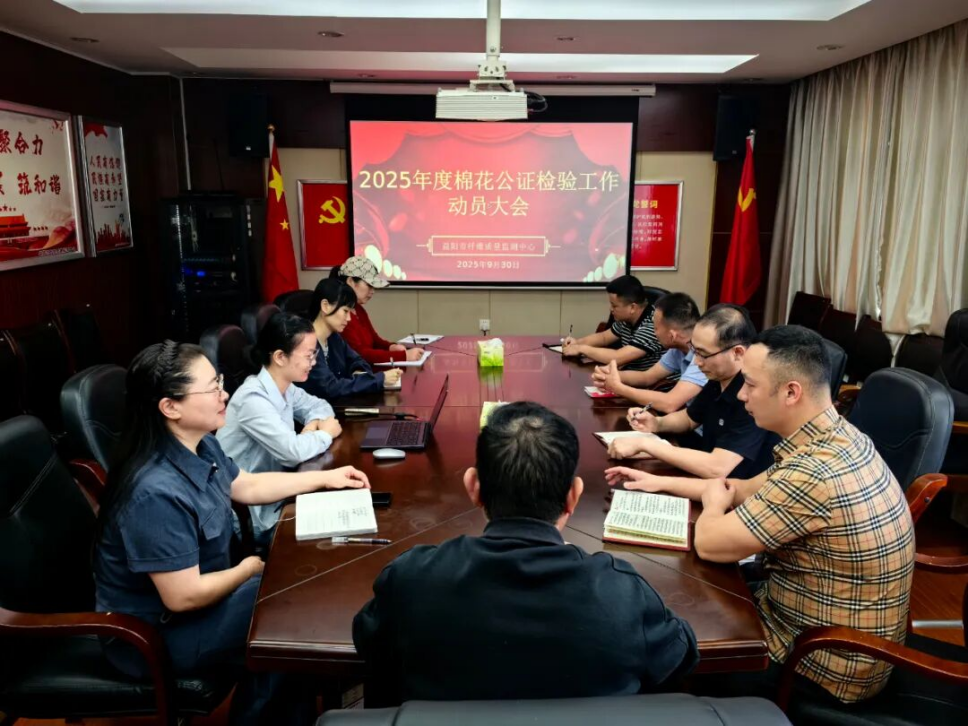 秋意渐浓,使命在肩。近日,益阳市纤维质量监测中心正式启动2025年度棉花公证检验工作。根据中国纤维质量监测中心统一部署,中心将分两批派出共16名专业技术人员,远赴新疆博尔塔拉蒙古自治州和常德临澧县执行监管棉公证检验任务。目前,所有人员已完成专业培训并签署工作协议,整装待发。