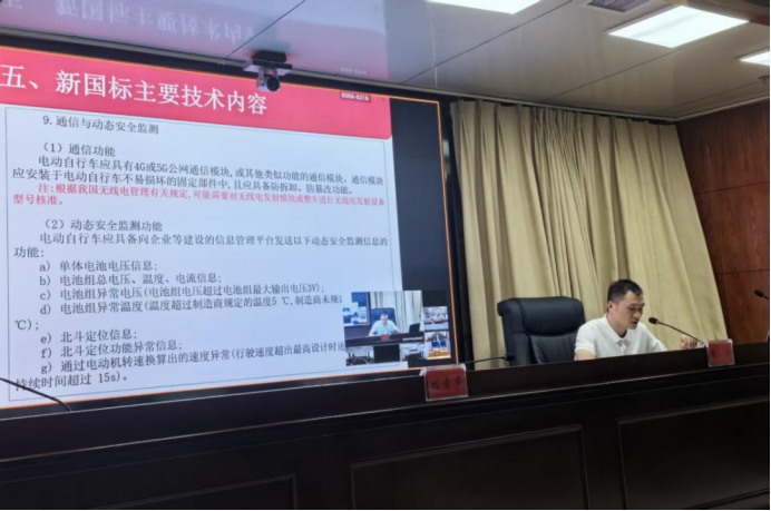 在宣贯环节,省质标院高新技术标准化和知识产权研究所工程师彭涛对今年9月1日已实施的《电动自行车安全技术规范》(GB 17761-2024)进行了详细解读。该新标准增加了整车标志、充电器、蓄电池等多方面的安全技术要求,对电动自行车的车速限制、整车质量、防火性能等方面提出了更高要求。彭涛还就《电动自行车用充电器安全技术要求》《电动自行车电器安全要求》《电动自行车用锂离子蓄电池安全技术规范》等配套标准进行了系统讲解,帮助生产经营者全面理解和掌握新规要求,进一步增强对标准化工作的认识,提升严格执行标准的自觉性和能力,共同筑牢电动自行车行业发展的安全底线和质量高线。