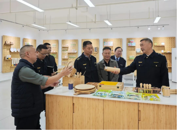 随后,调研组走进湖南竹腾环保科技有限公司产品展示厅和生产车间,详细了解企业生产经营、技术工艺、产品研发、市场销售以及品牌建设情况,特别询问了企业在执行产品标准、获得认证及知识产权保护等方面情况。黄劲鼓励企业,一要抓好产品质量管理,构建完善的内部控制体系。二要注重创新,加大研发投入,引领竹产业转型升级,特别肯定了公司在竹文玩产品方面的努力。三要强化品牌培育,市县两级市场监管部门要在标准制定、质量提升、品牌建设等方面做好服务,为桃江竹产业高质量发展贡献市场监管力量。