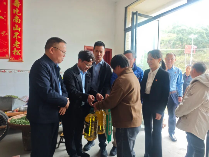 在栗林村村部,支部党员与村“两委”干部、驻村工作队队员召开专题座谈会,围绕乡村振兴帮扶工作展开深入交流。随后,支部党员分成多个小组,深入困难群众家中开展慰问帮扶,为他们送去生活用品,详细询问身体状况和生产生活中的难题。结合市场监管职能,党员志愿者还在村广场开展消费陷阱警示宣传,通过发放宣传手册、现场讲解案例等形式,向村民普及虚假宣传、假冒伪劣等常见消费陷阱的识别技巧和维权途径,提升农村消费者依法维权意识,为乡村振兴筑牢消费安全防线。