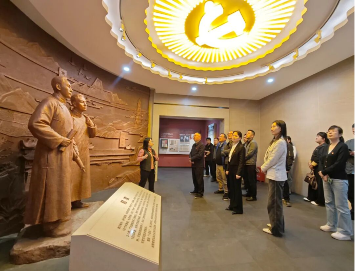 下午,支部党员前往安化一中红色教育基地,追寻伟人足迹,传承红色基因。在毛泽东游学经历陈列馆,大家认真聆听讲解员介绍毛泽东同志在安化游学期间的革命实践故事,通过珍贵史料和老照片,深刻感悟伟人青年时期的家国情怀与革命初心。在鲜红的党旗下,全体党员举起右拳,庄严重温入党誓词,铿锵有力的誓言回荡在校园中,彰显着不忘初心、牢记使命的坚定信念。