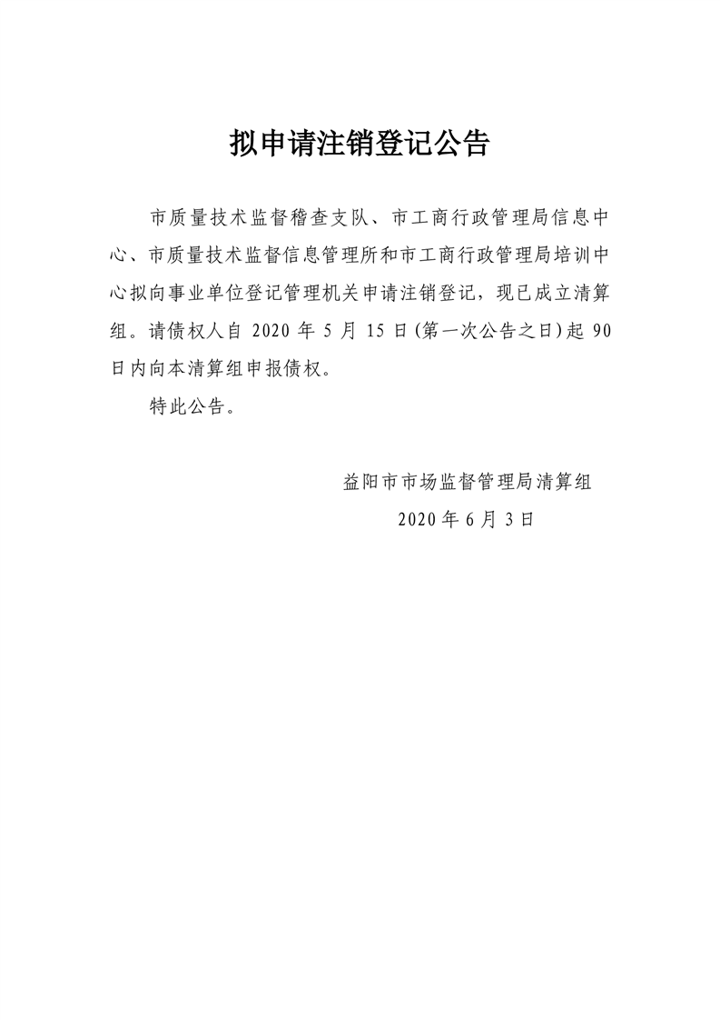 | 市质量技术监督稽查支队、市工商行政管理局信息中心、市质量技术监督信息管理所和市工商行政管理局培训中心拟申请注销登记公告(3) |