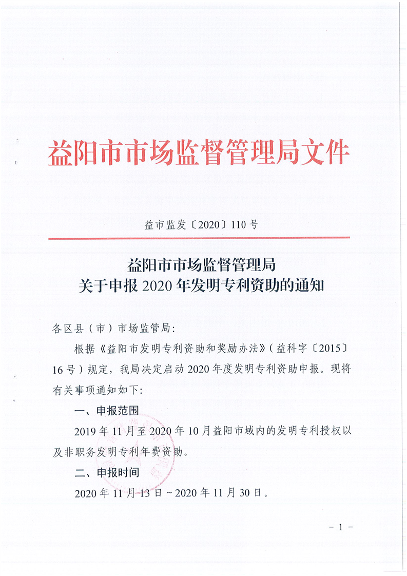 关于申报2020 年发明专利资助的通知