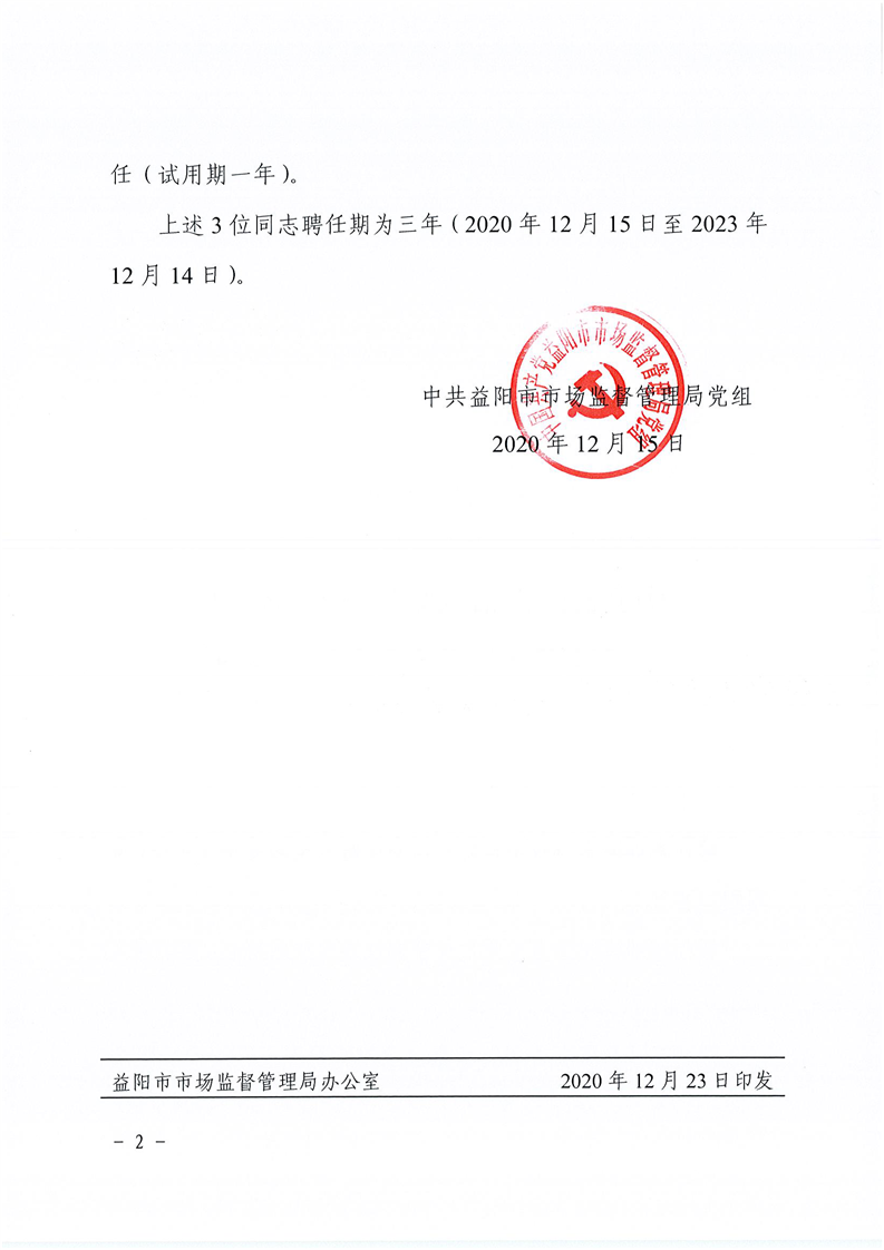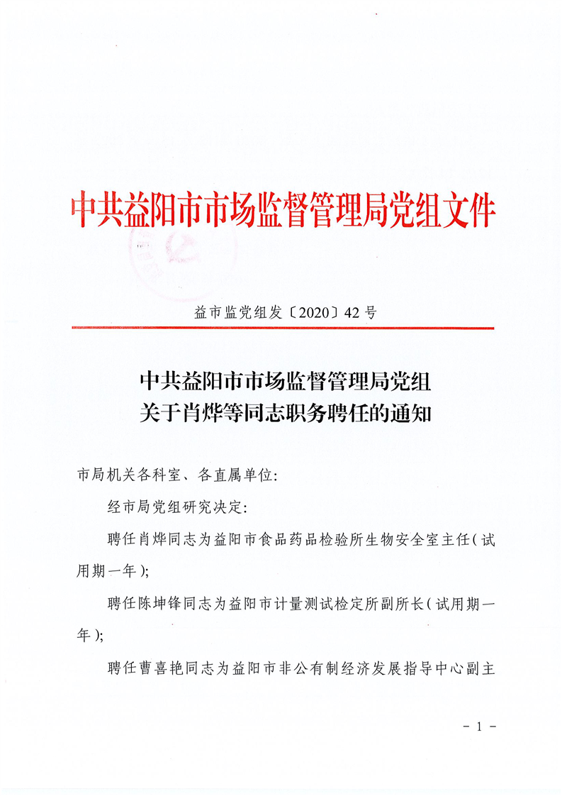 | 中共益阳市市场监督管理局党组关于肖烨等同志职务任免的通知 |