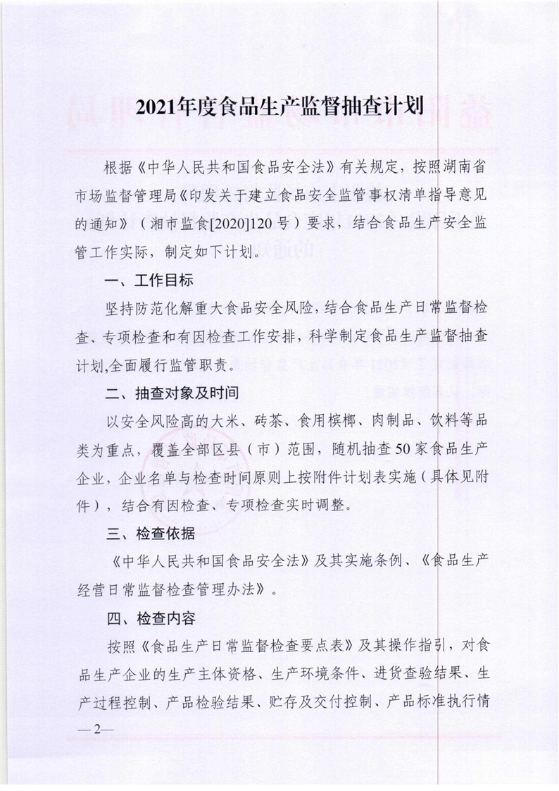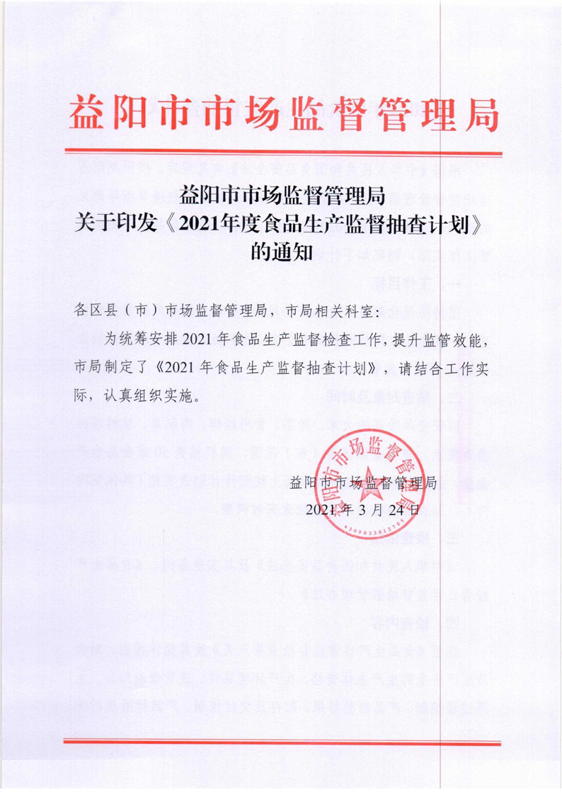 | 关于印发《2021年度食品生产监督抽查计划》的通知 |