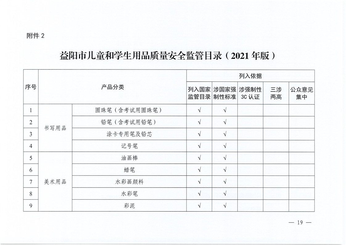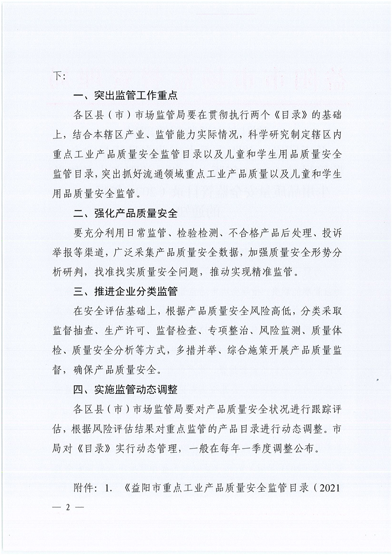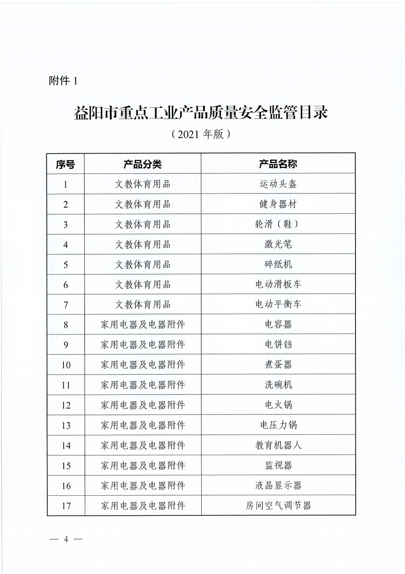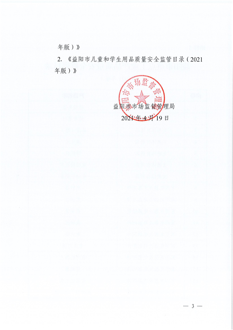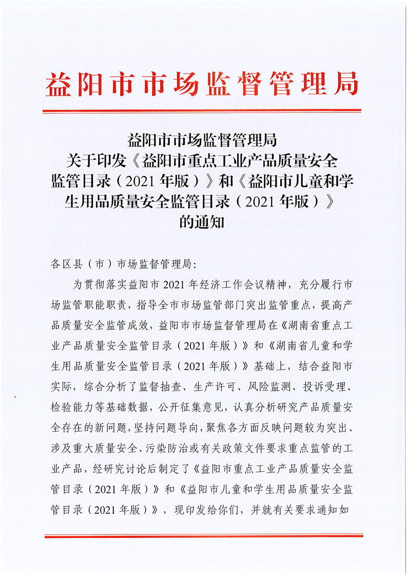 | 益阳市市场监督管理局关于印发《益阳市重点工业产品质量安全监管目录( 2021 年版)》 和《益阳市儿童和学生用品质量安全监管日录( 2021 年版) 》的通知 |