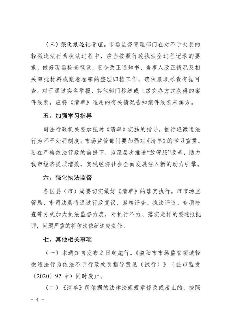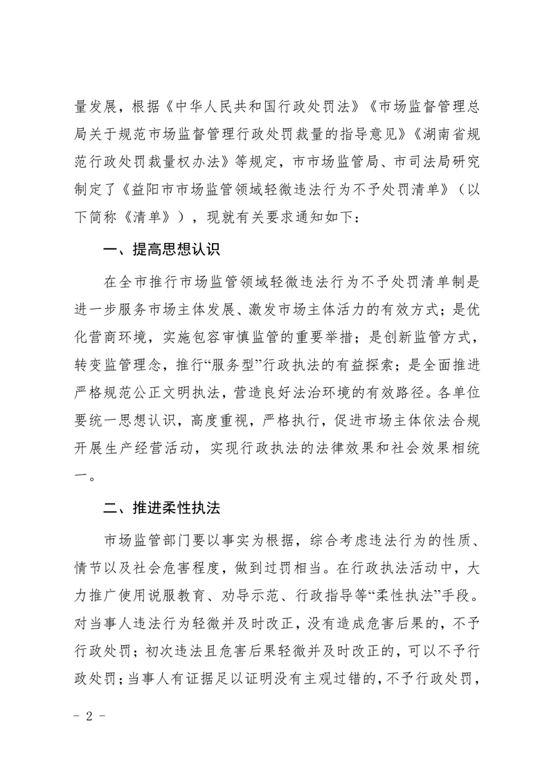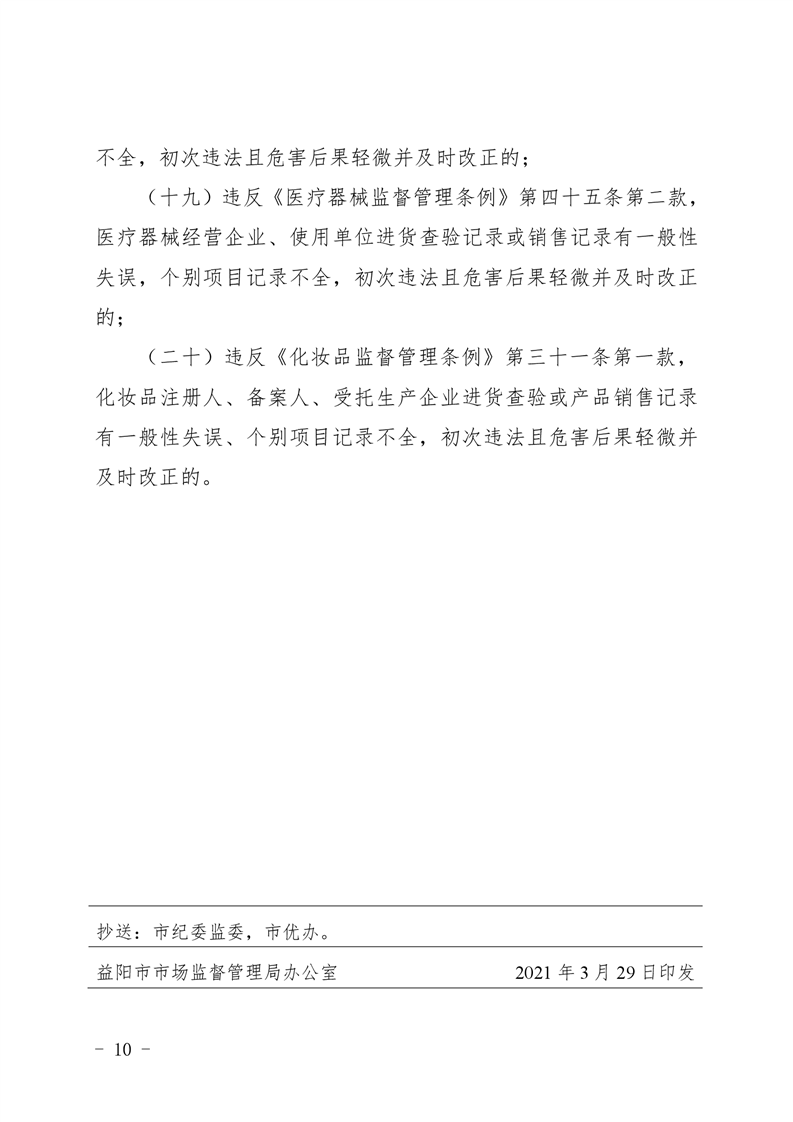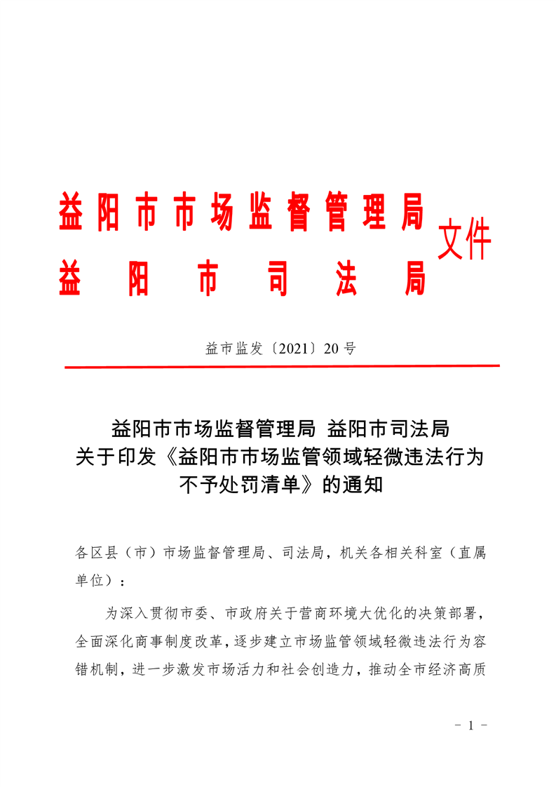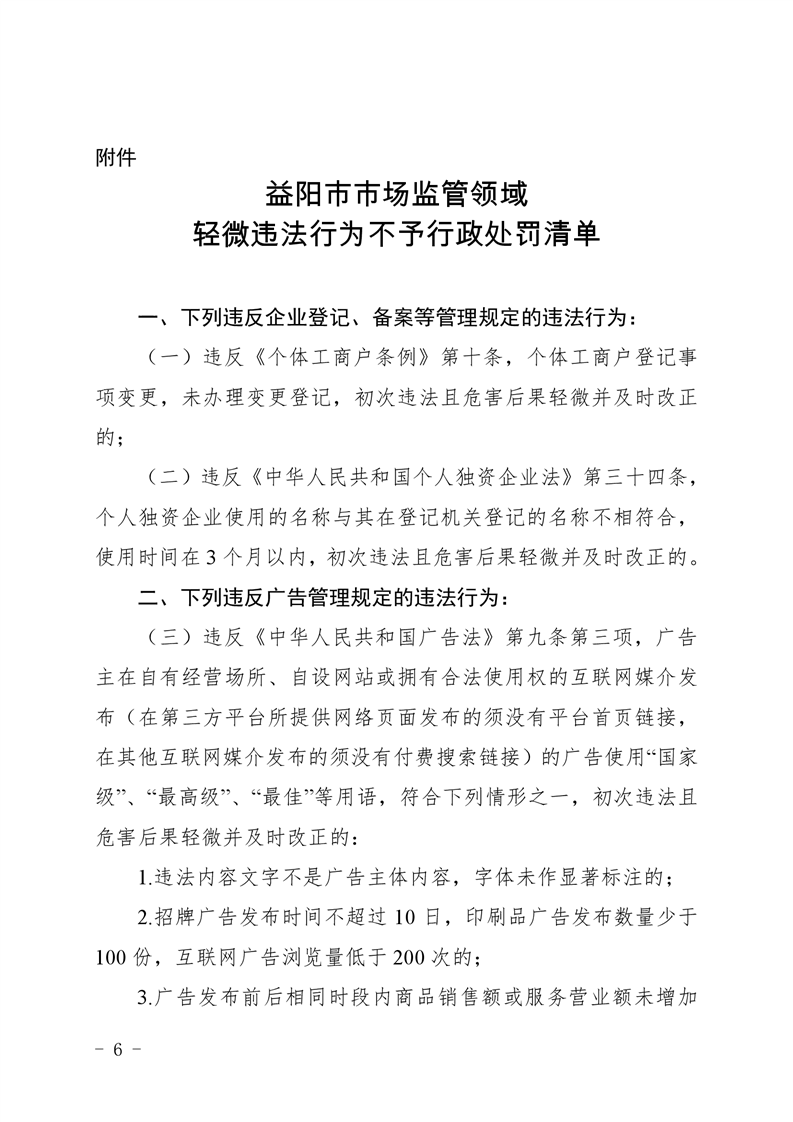 | 关于印发《益阳市市场监管领域轻微违法行为不予处罚清单》的通知 |