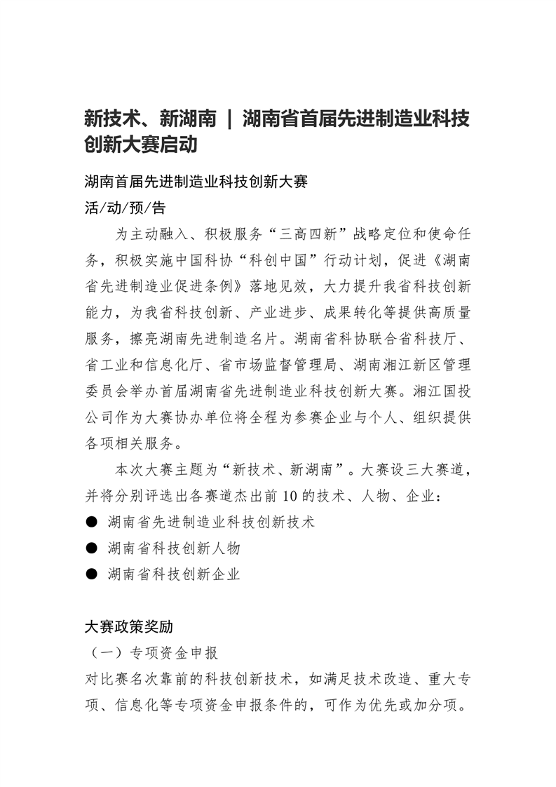 关于举办首届湖南省先进制造业科技创新大赛活动的通知