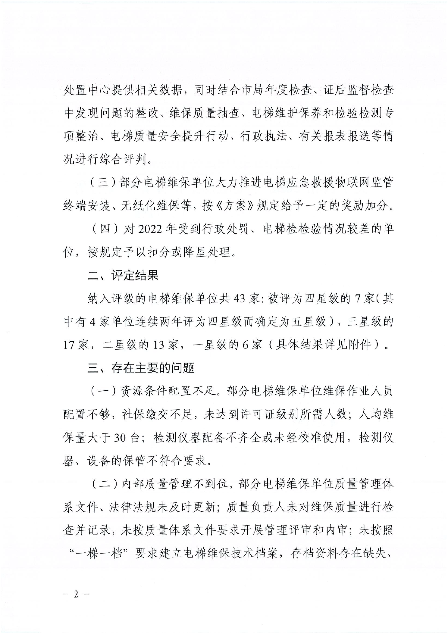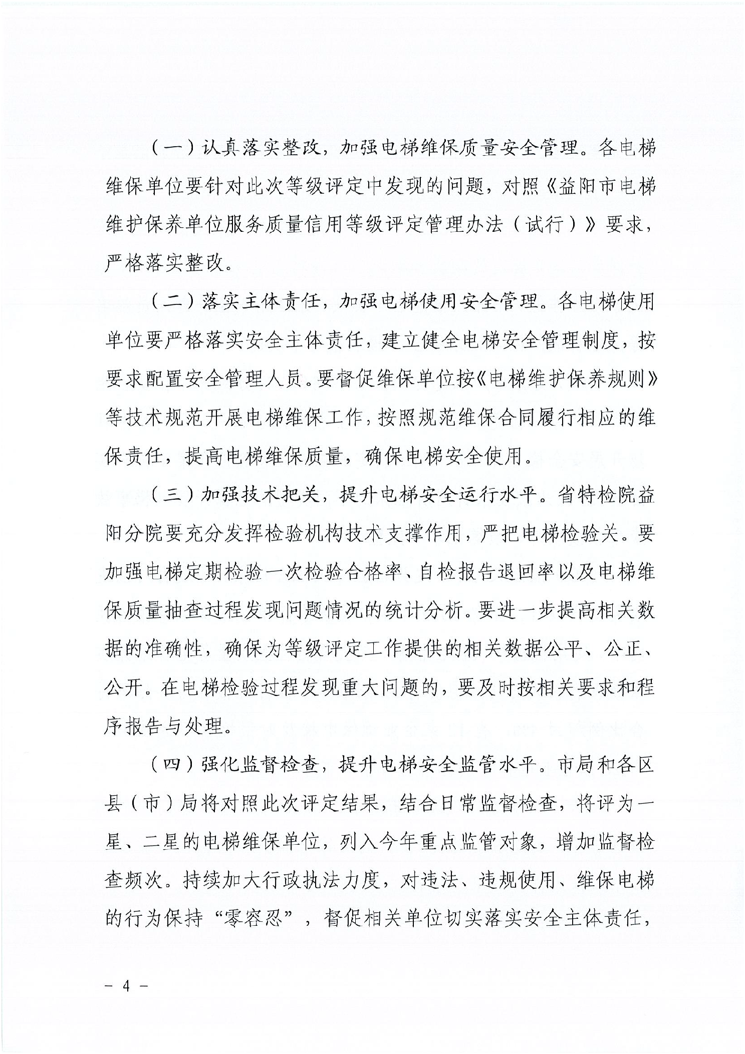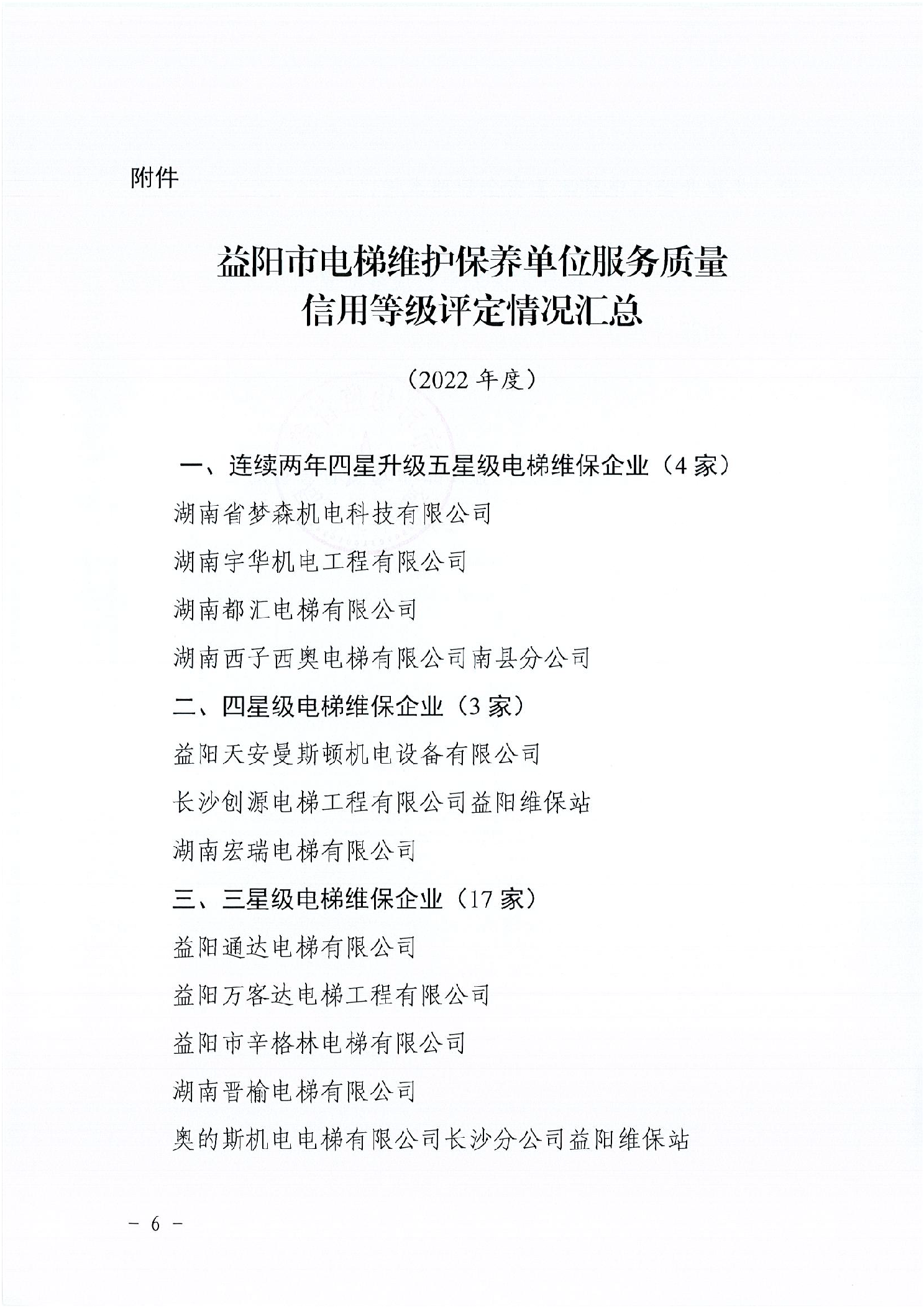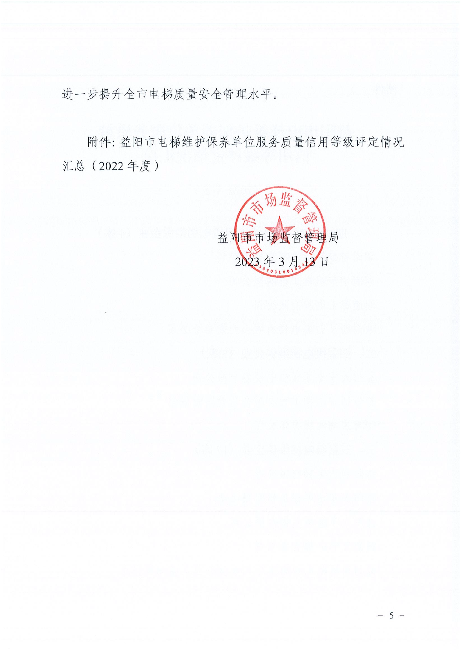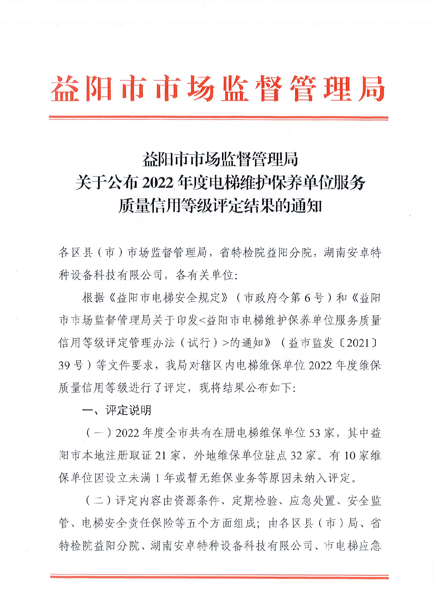 | 关于公布2022年度益阳市电梯维护保养单位服务质量信用等级评定结果的通知 |