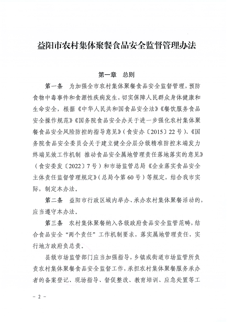 | 关于印发《益阳市农村集体聚餐食品安全监督管理办法》的通知 |