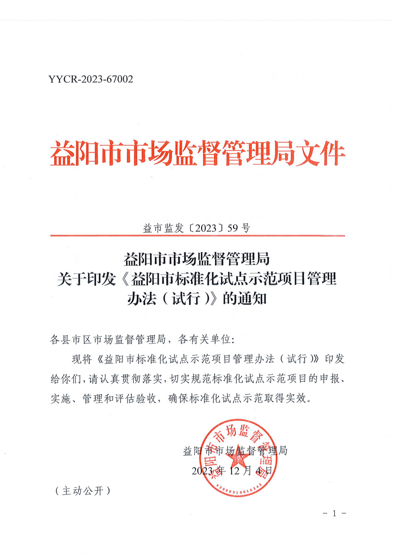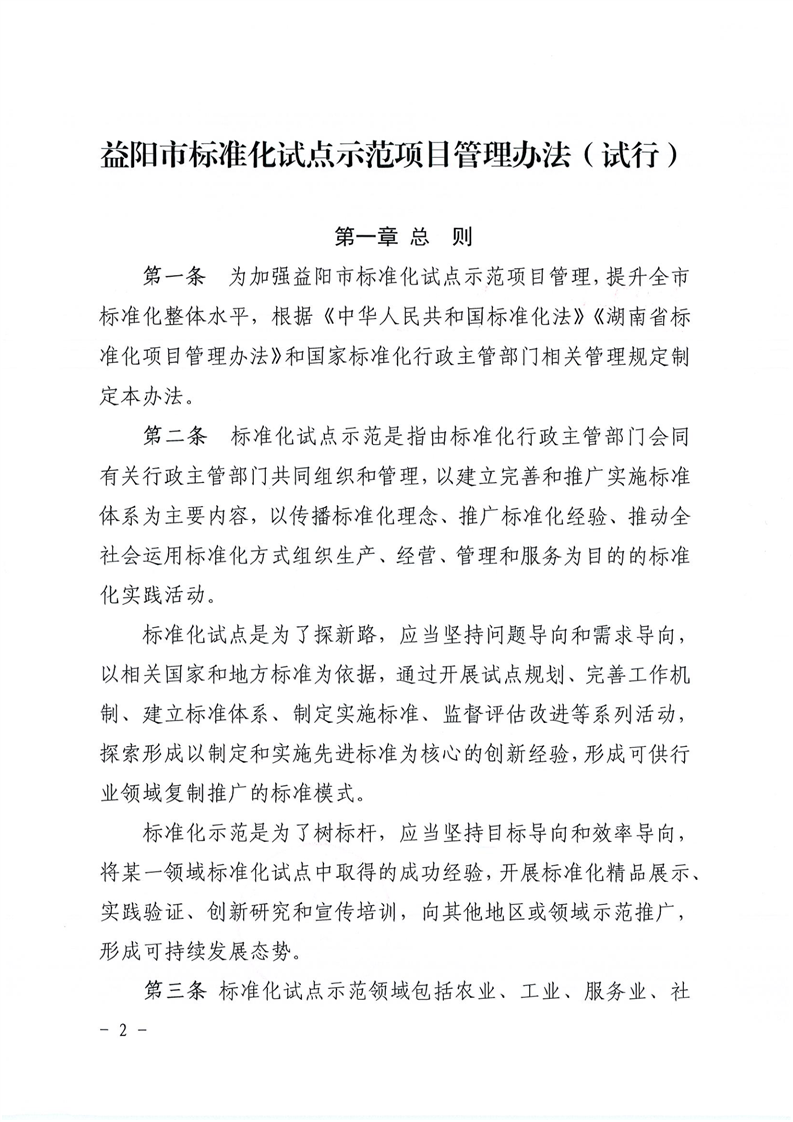| 关于印发《益阳市标准化试点示范项目管理办法(试行)》的通知 |