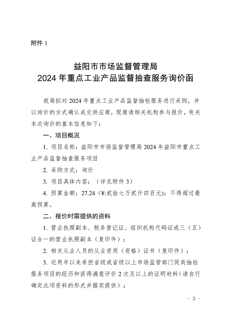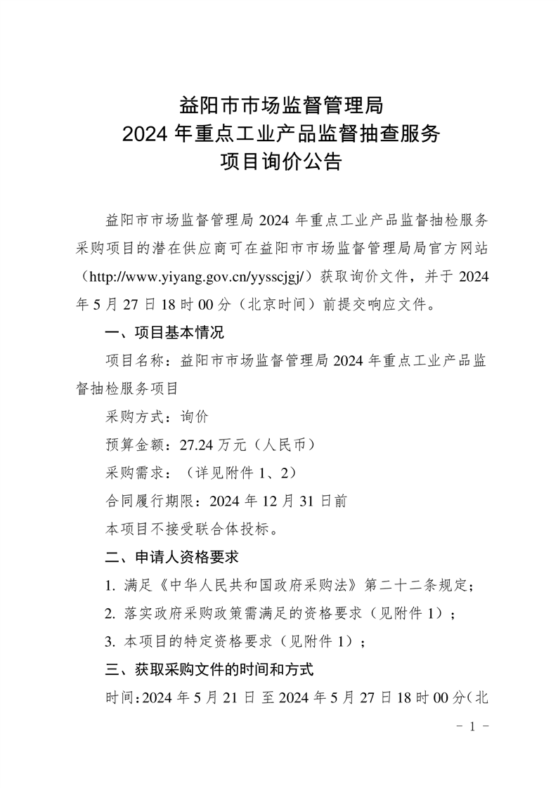 | 2024年重点工业产品监督抽查服务项目询价公告 |