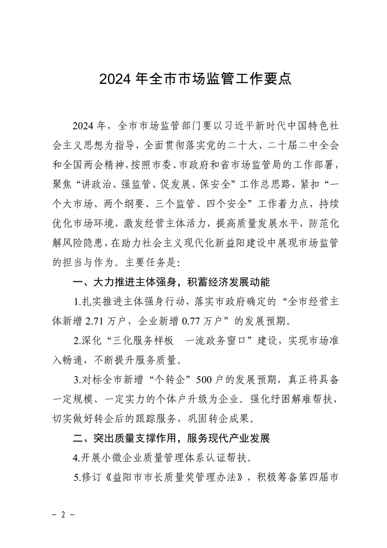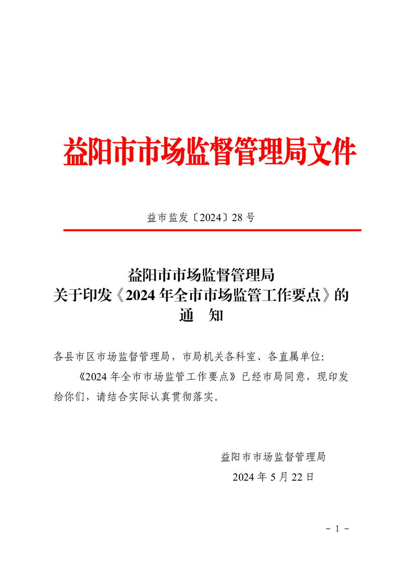 | 关于印发《2024年全市市场监管工作要点》的通知 |