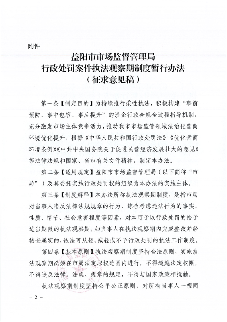 | 关于《益阳市市场监督管理局行政处罚案件执法观察期制度暂行办法(征求意见稿)》征求意见的公告 |