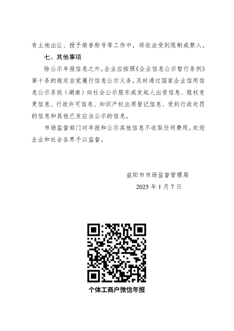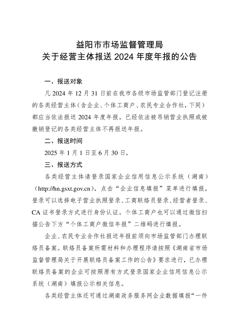 | 关于经营主体报送2024年度年报的公告 |