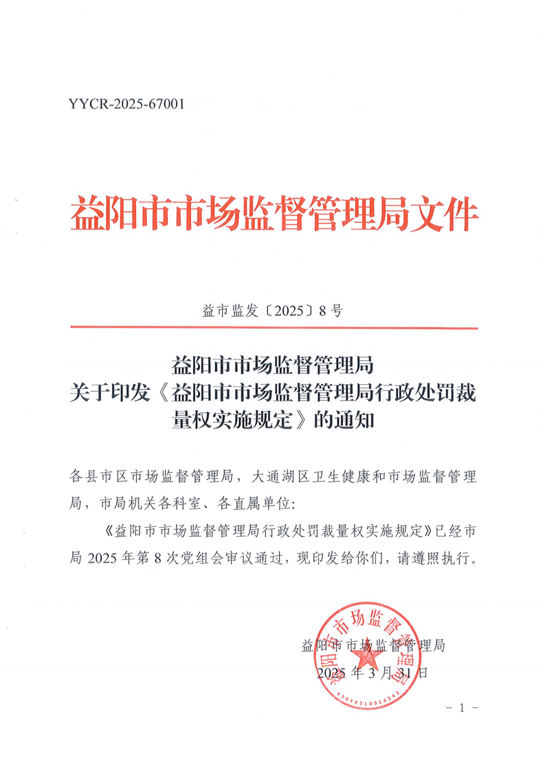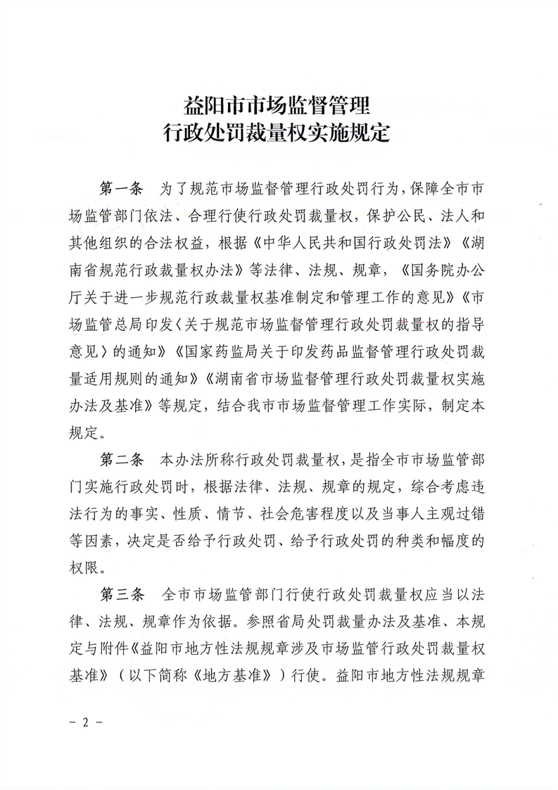 | 关于印发《益阳市市场监督管理局行政处罚裁量权实施规定》的通知 |