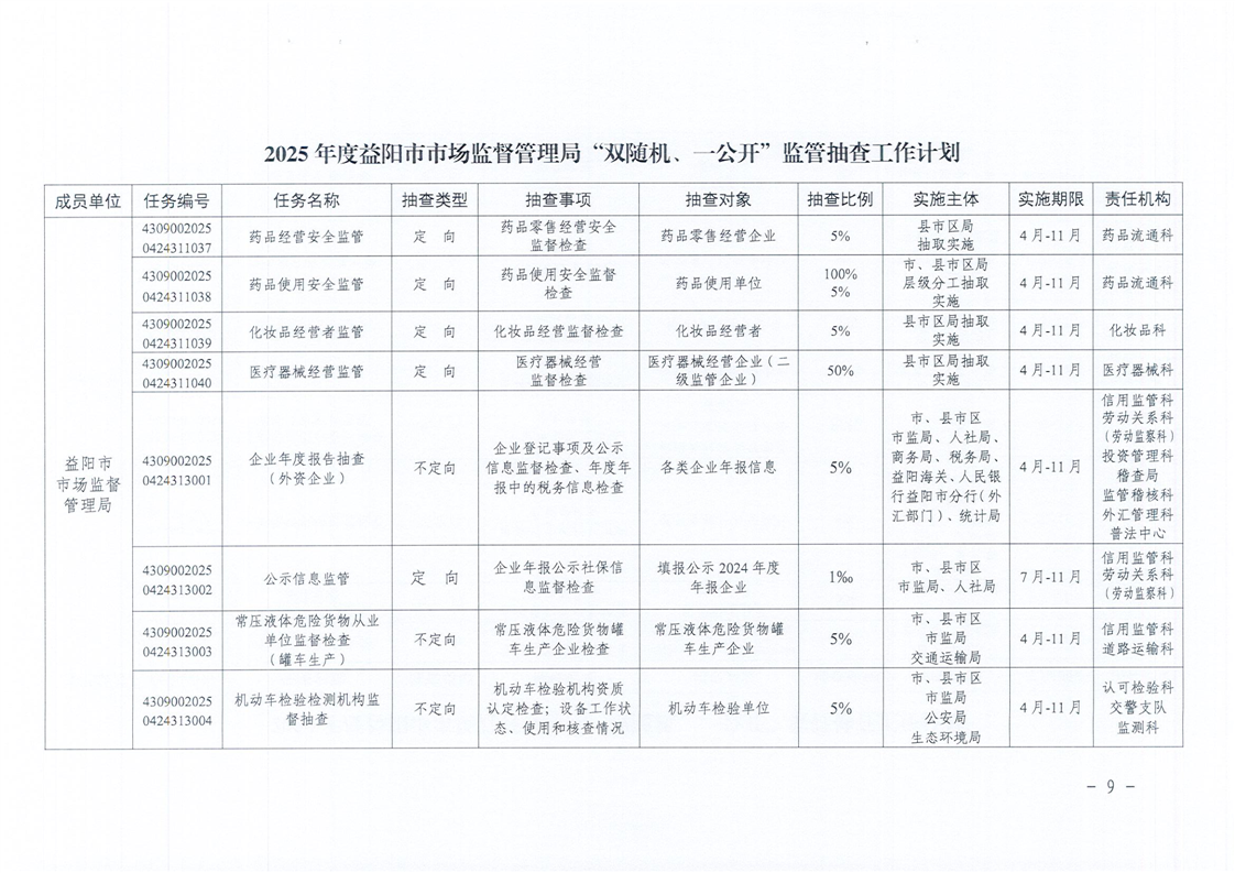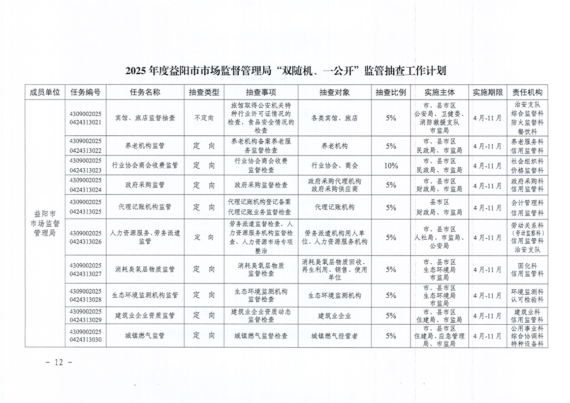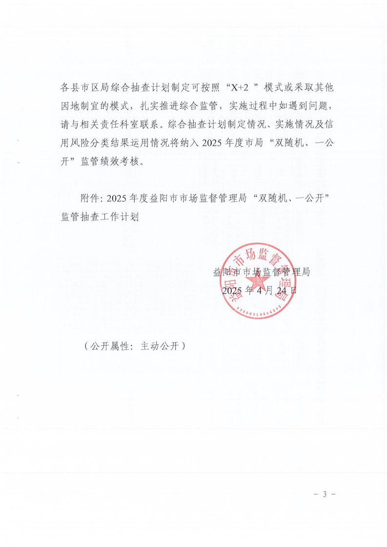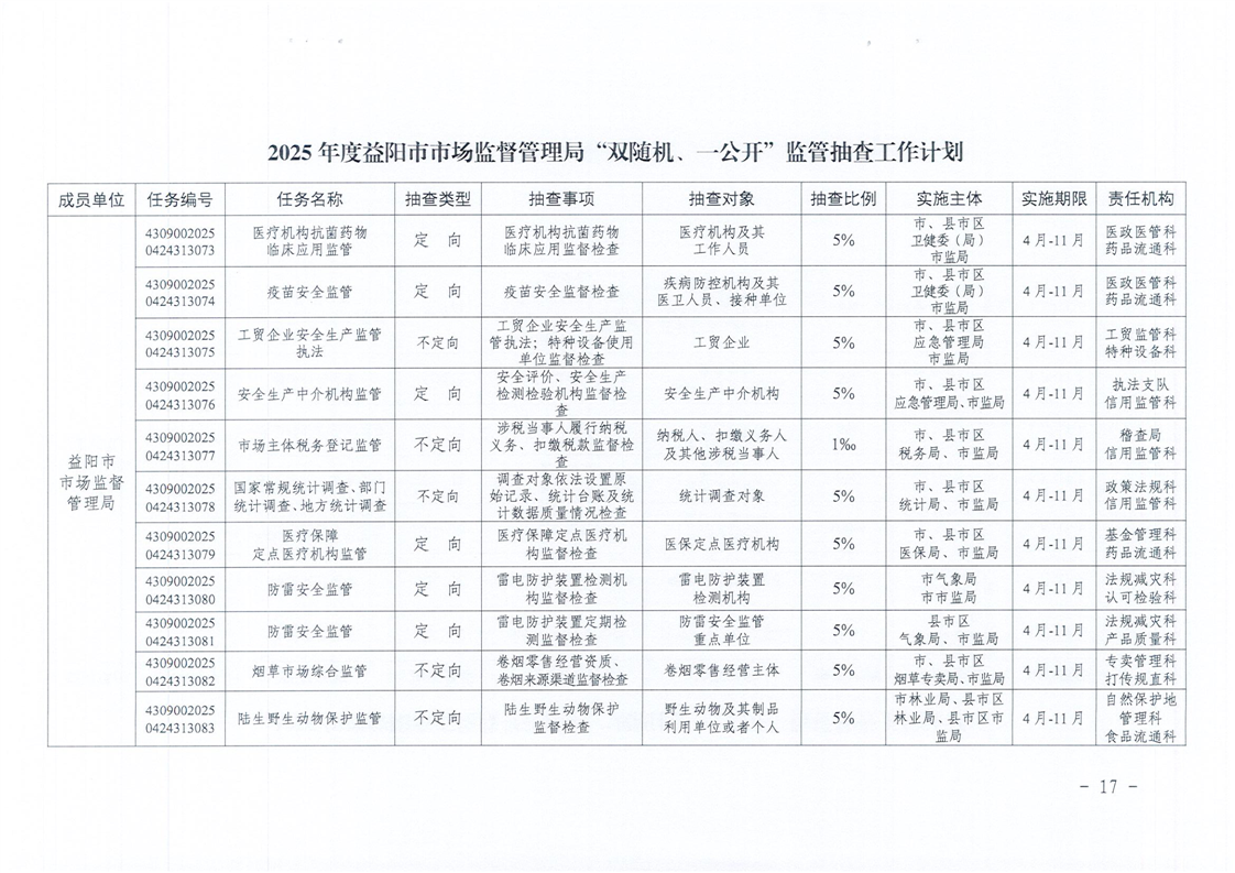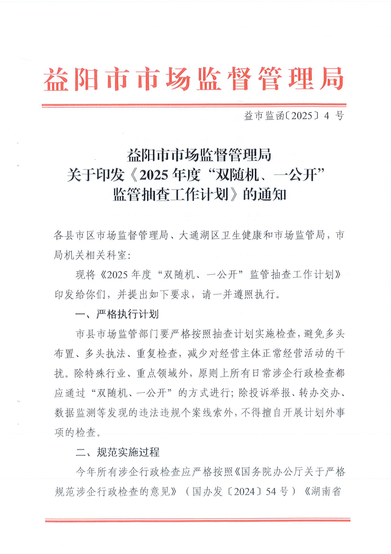 | 关于印发《2025年度“双随机、一公开”监管抽查工作计划》的通知 |