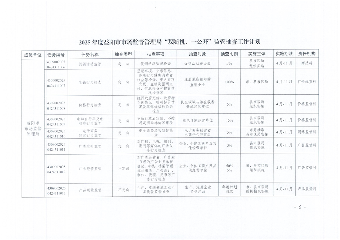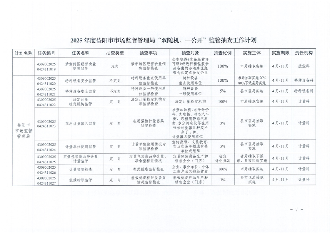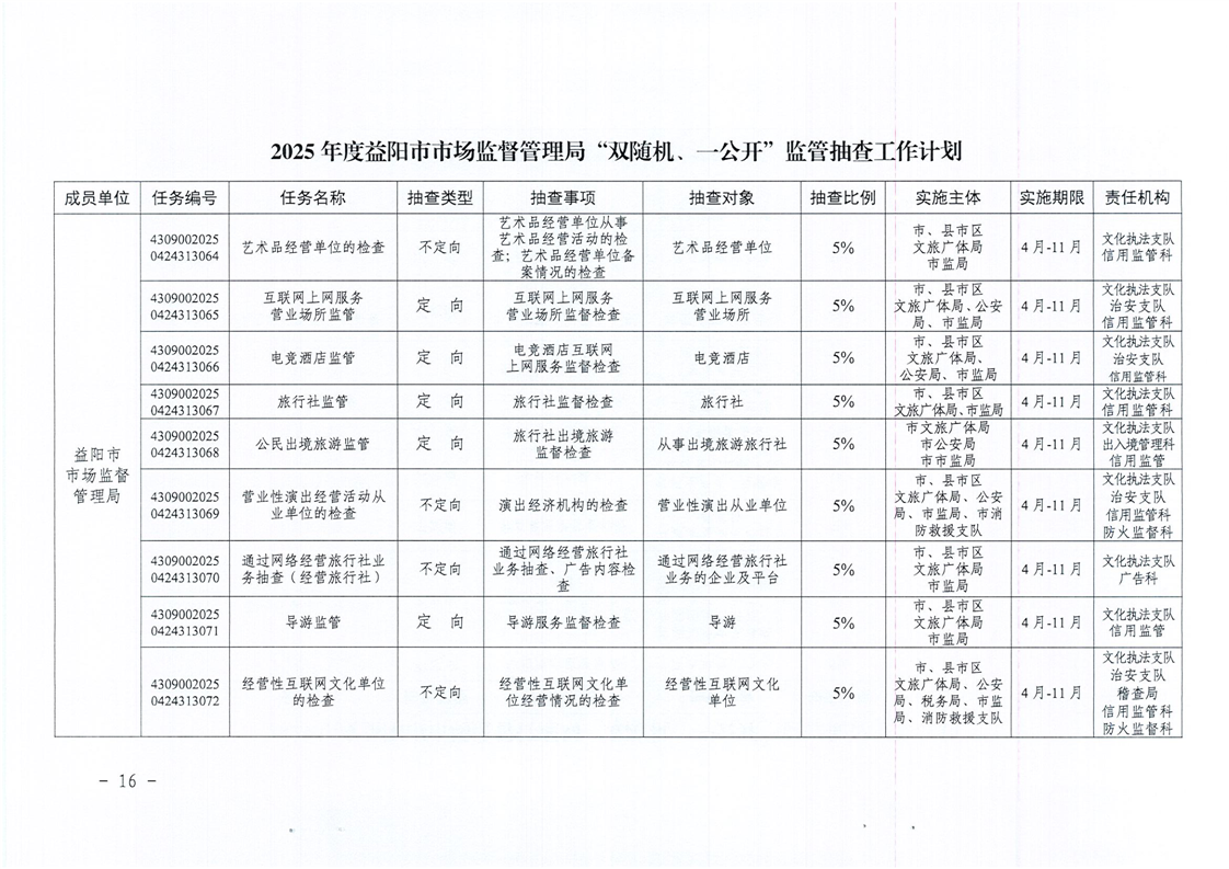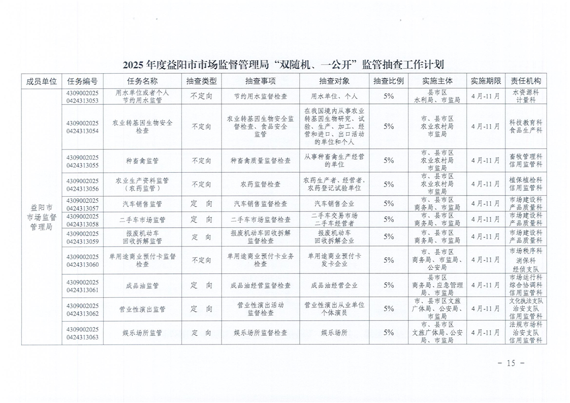 | 关于印发《2025年度“双随机、一公开”监管抽查工作计划》的通知 |