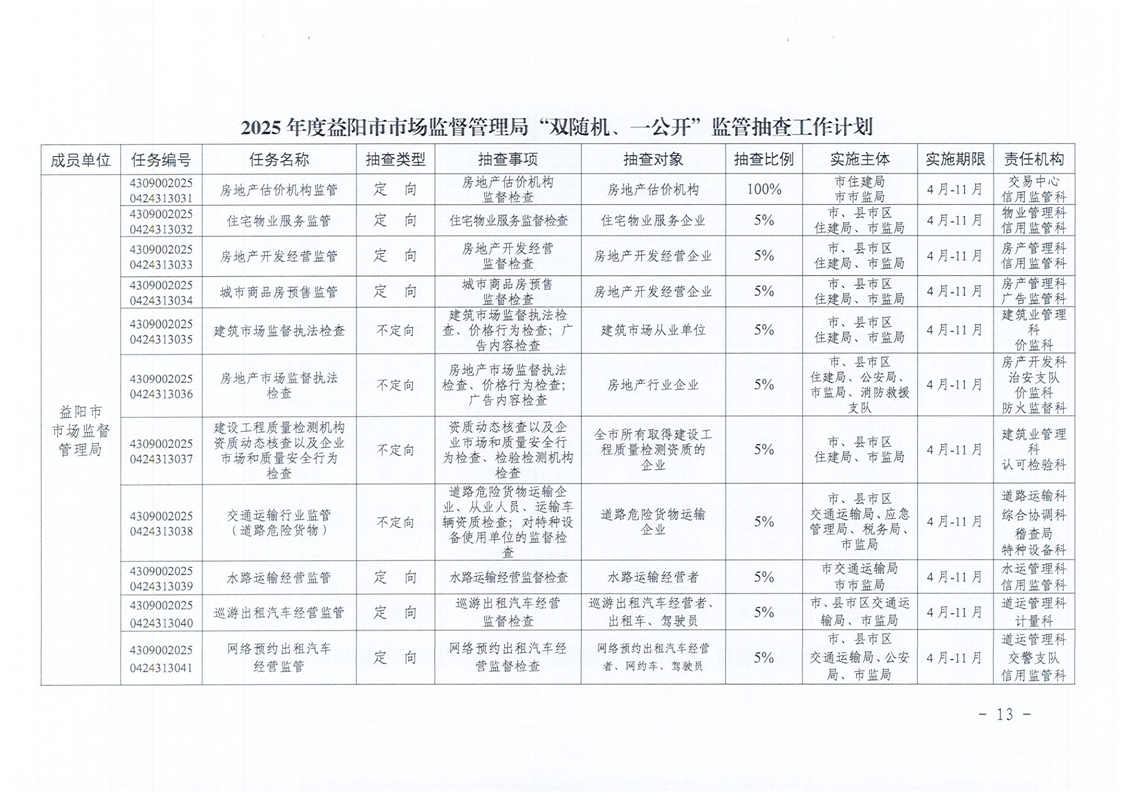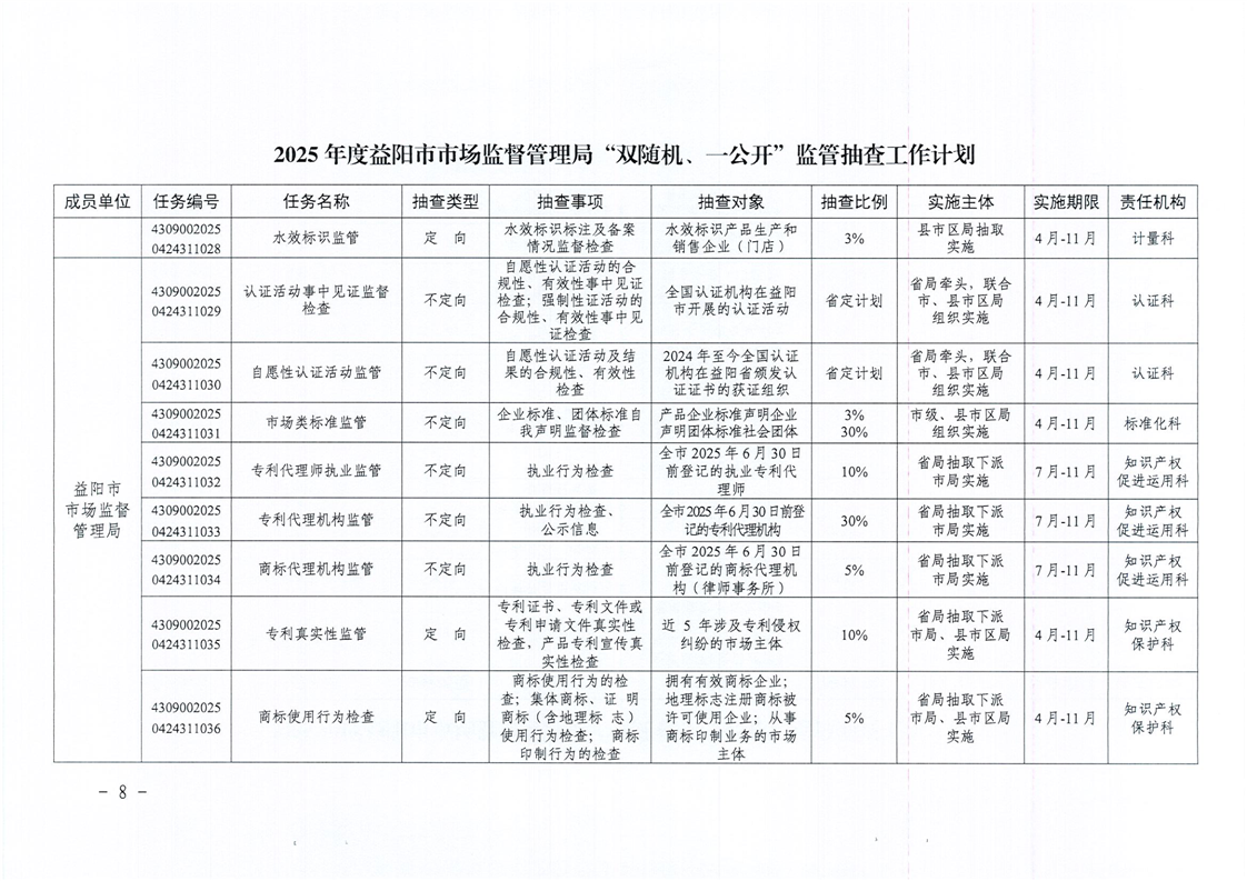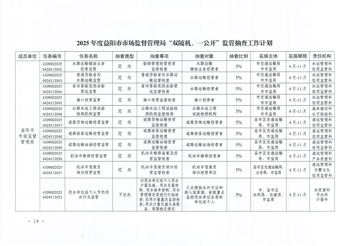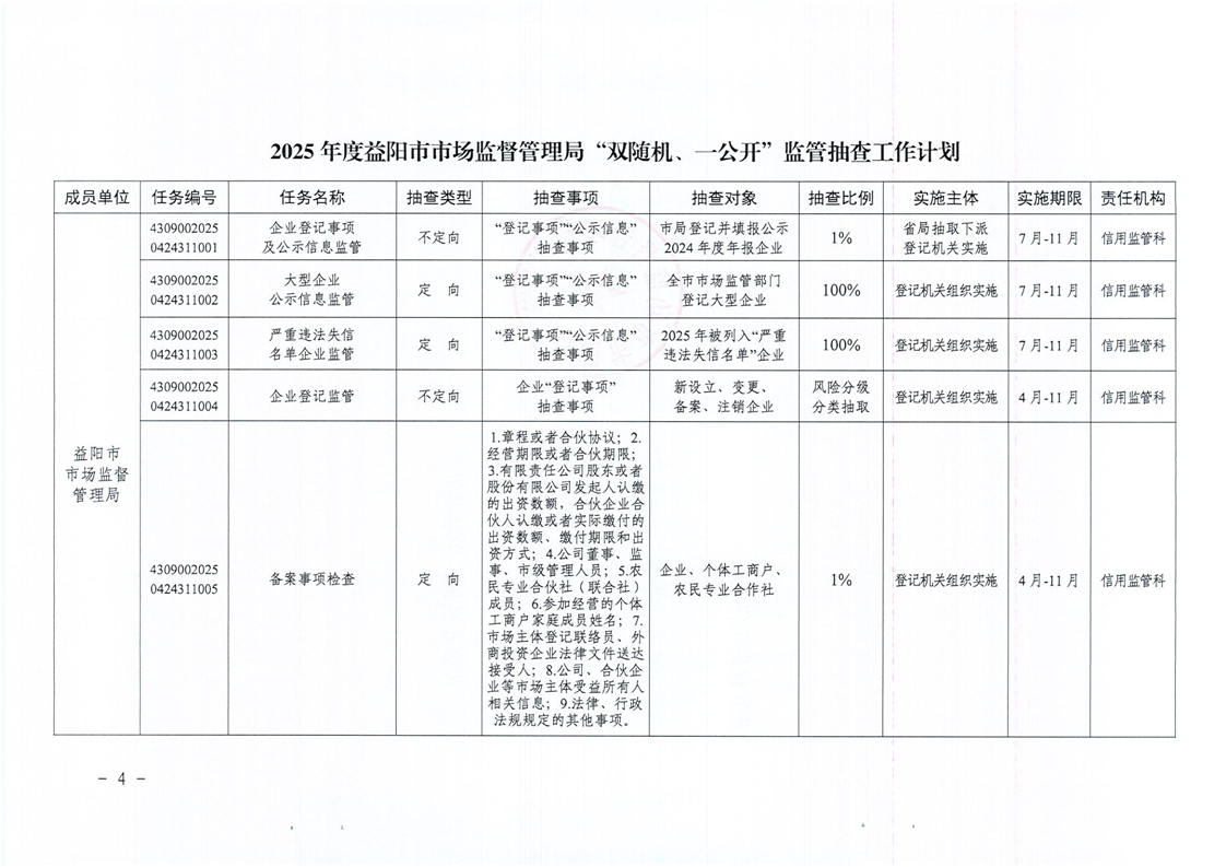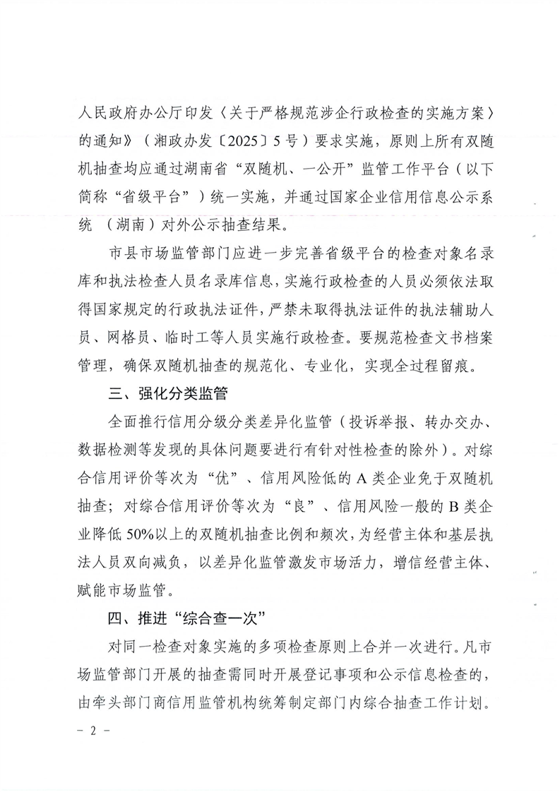 | 关于印发《2025年度“双随机、一公开”监管抽查工作计划》的通知 |