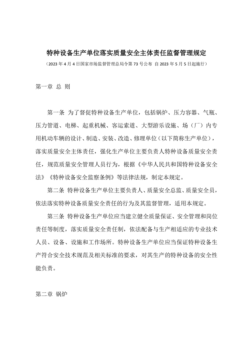 | 特种设备生产单位落实质量安全主体责任监督管理规定 |