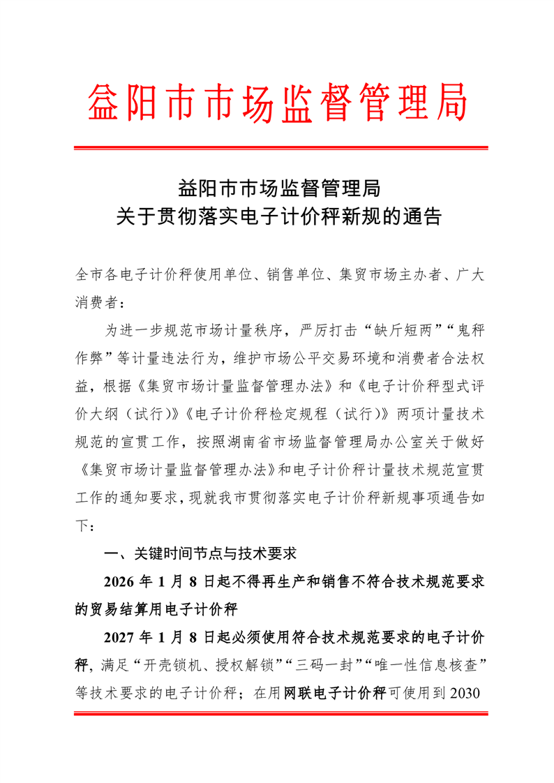 | 关于贯彻落实电子计价秤新规的通告 |