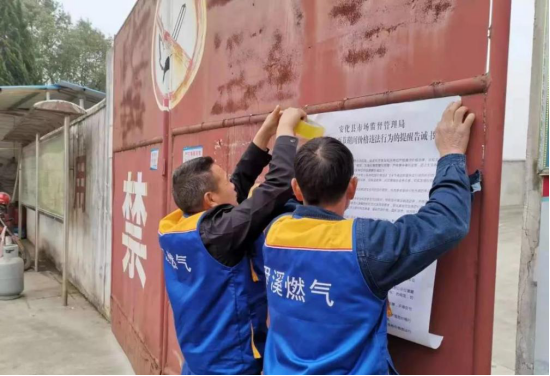 (伊溪燃气公司工作人员张贴《关于规范两节期间价格违法行为的提醒告诫书》)