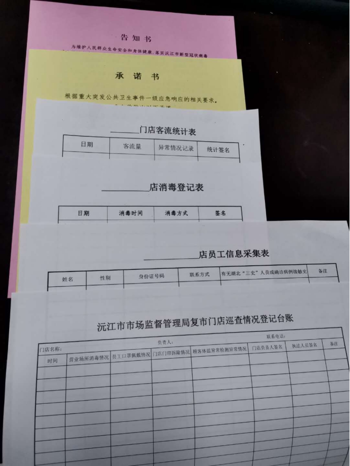 据了解,“双打卡”制度是指执法人员对复市门店巡查打卡到位、门店经营者内部管控打卡到位。在巡查中,执法人员向复市门店发放《告知书》,每天督促复市门店对营业场所消毒、员工口罩佩戴、门店门帘拆除、顾客体温检测异常情况报告等要求落实到位,在《巡查登记台账》上双方确认签字。复市门店经营者要认真填写好《员工信息采集表》、《消毒登记表》和《客流统计表》,同时,承诺将《告知书》上的要求落实到位,保障消费者的健康安全。通过“三表一书一台账一告知书”,将复市门店的防疫工作环环相扣,不留断点。