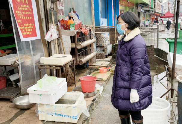 (林奇志检查经营门店) 林奇志作为安化县市场监管局第三督导组组长、案件查办与会议营销监督组组长,保障疫情期间全县市场稳定,她深感责任重大。从大年初二开始,连续37天,林奇志每天辗转在滔溪、江南等7个乡镇指挥疫情防控,商场、超市、药店、小区时常都能看见她的身影,一个口罩就是她全部的防护。