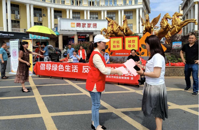 5月22日下午,益阳高新区市场监督管理局在福中福前坪开展以“倡导绿色生活,反对铺张浪费”为主题的宣传活动。