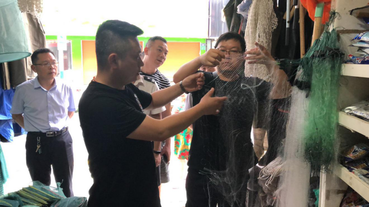 7月6日,安化县市场监督管理局联合县农业农村局综合执法大队、县商务局市场管理中心,对辖区内渔具销售经营门店、餐饮门店和农贸市场鱼类销售摊位开展了“禁捕退捕”专项执法检查。