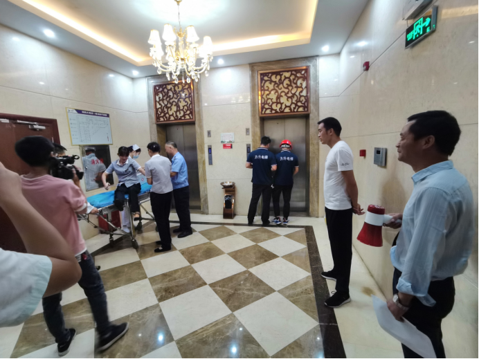 9月10日上午,大通湖区市场监督管理局在湘韵大酒店开展了电梯应急救援演练活动。