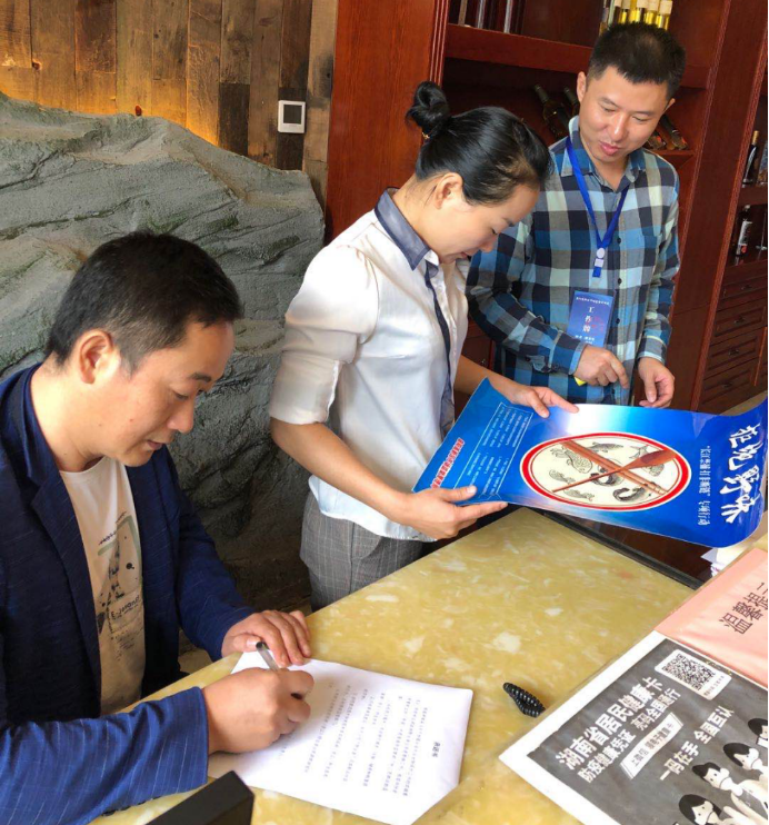 (执法人员向餐饮经营户送达宣传海报,并引导签订承诺书) 会后,高新区市场监管局干职工主动取消周末,迅速投入“禁捕退捕”回头看工作,在巩固前期工作的基础上,再次印制宣传海报600份、承诺书1000份,将陆续发放至辖区各大餐饮主体及各类门店,确保“禁捕退捕”宣传工作无死角、全覆盖、收实效。 |