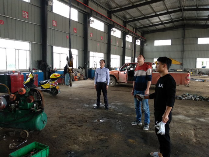 (执法人员现场查看起重机械使用情况) 当日,执法人员先后来到湖南亲嘴娃食品有限公司、益阳大通湖中燃城市燃气发展有限公司等特种设备使用单位,检查了锅炉、压力管道、压力容器、起重机械、电梯等特种设备的检验合格证、使用登记证、维护保养记录、安全警示设置等情况,查阅了作业人员证件、应急救援演练等资料。检查发现,个别企业的在用电梯未按要求张贴警示标识和检验合格标识,执法人员当场下达了安全监察指令书,责令限期整改。