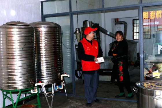 (该局帮扶工作人员陈建波侄女提供的招聘简章) 渔民上岸开油行 上门解忧暖人心 “老板娘,油行生意好不咯?”再次走进沅江市金沙路“金记油行”,只听见“隆隆”榨油机器声从里屋里传来,隔着玻璃门能看见老板金运生不停往机器中倒入菜籽、查看油渣……在外屋招呼客人的老板娘杨桂新见到我们的到来笑着说:“好呢好呢!你看老金天天忙不赢。” 56岁的金运生是沅江市万子湖澎湖潭的渔民,祖祖辈辈靠打渔为生。到金运生这一辈因政府每年都有禁渔期,加上出湖打渔风险大,收获少,逐渐无法维持一家子的生活。2014年开始,金运生跟随亲戚学习传统农作物制作加工榨油技术。2019年,他在金沙路西区菜市场旁盘了一间门面开始经营“金记油行”。刚开业不久,就接到因生产产地不符合食品生产条件被要求停业整改的通知,金运生一时陷入困境。了解到情况后,该局非公党委委员冷文彬第一时间联系金运生,开通"便民渠道", 与该局食品生产股工作人员主动上门,就生产场地、生产流程、质量监控等提出专业指导,并对场地的装饰及材料要求提出了合理化建议,经过提质改造,金运生的门店已焕然一新,已符合小作坊生产要求。 “去年要不是你们的帮助,我们还不知道在哪喝西北风呢!我相信只要跟着政府走,按政府的要求办,我们油坊生意会越来越好,日子也会过得越来越红火。”老板娘开心的说道。