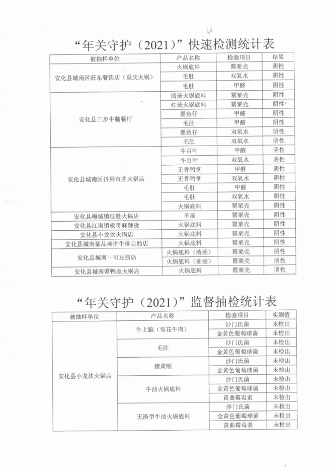 安化县市场监管局抽检了“三不牛腩”“谭鸭血”“抖唇市井火锅”“小龙坎”等门店,结合疫情防控、禁捕退捕等工作,进一步压实监管人员和市场主体责任。一是落实疫情防控措施。要求进出人员必须佩戴口罩,出示健康码,做好体温登记。门店做到全面消杀、生熟分开、分餐分食、公筷公勺,同时禁止举办多人聚会及大型宴席;二是加强进货查验。特别是进口冷链食品的进货查验,索取检验检疫证明、核酸检测证明、消毒证明、报关单四个证明;三是做好禁渔禁捕,打非断链。进购鱼类要索证索票,做好台账登记。禁止使用野生鱼及其制品,门牌、招牌、广告、菜单中严禁出现“野生鱼”“江河鱼”等字样;四是禁止餐饮浪费提示。倡导经营场所向顾客提供小分量的饭菜,提供免费打包盒。