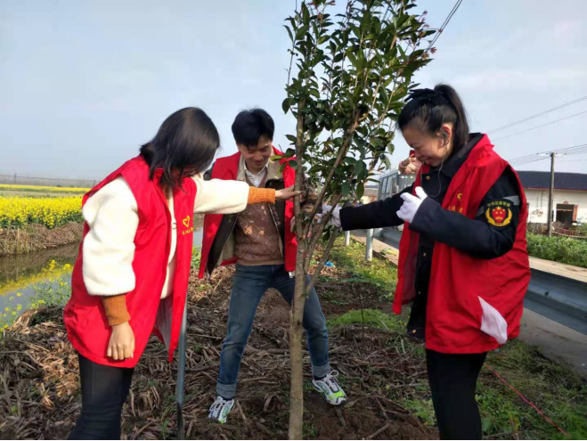 春回大地万物苏、植树添绿正当时。3月12日,大通湖区市场监督管理局30余名工作人员来到北洲子镇永兴村开展了义务植树活动。