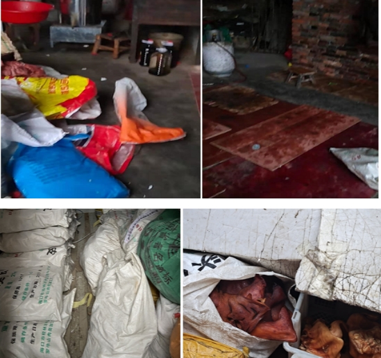 4月7日凌晨,桃江县市场监管局综合行政执法大队肉食稽查人员经过前期缜密侦查,精准出击,查获一家隐藏于桃花江镇某社区居民楼楼顶的熏腊制品黑作坊。