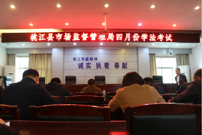 4月28日下午,桃江县市场监管局四月份学法考试在该局六楼会议室进行,20余名干职工参加考试。