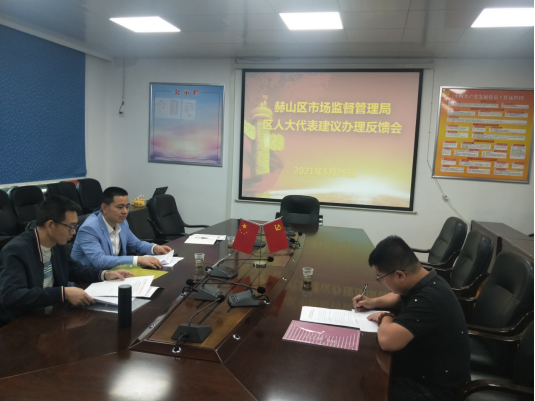 5月25日上午,赫山区市场监管局召开人大代表建议办理情况反馈座谈会,赫山区人大代表陈滔及区市场监管局副局长黄建新等相关责任人参加会议。