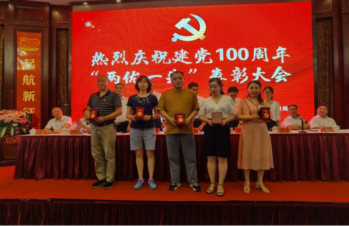 会议宣读了《建党100周年“两优一先”表彰决定》,局党组为离退休党员代表颁发“光荣在党50年”纪念章,为优秀共产党员、优秀党务工作者、先进基层党支部颁发“两优一先”奖章。4名“两优一先”代表分别作先进典型发言。