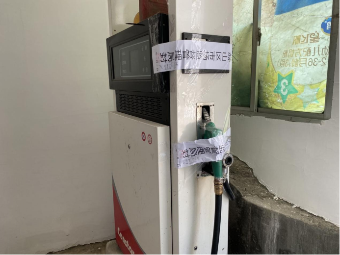 (查封的加油机) 现场检查发现当事人何某无证无照经营柴油。该窝点有3个可贮存10吨柴油的罐子和1台加油机及其他设施设备,执法人员对现场进行了拍照、记录、查封等。同时,该窝点设置在一民房背面负一层,周边都是民房,无任何消防设施,存在很大安全隐患。对当事人涉嫌的违法行为,市场监管部门将进一步调查处理。